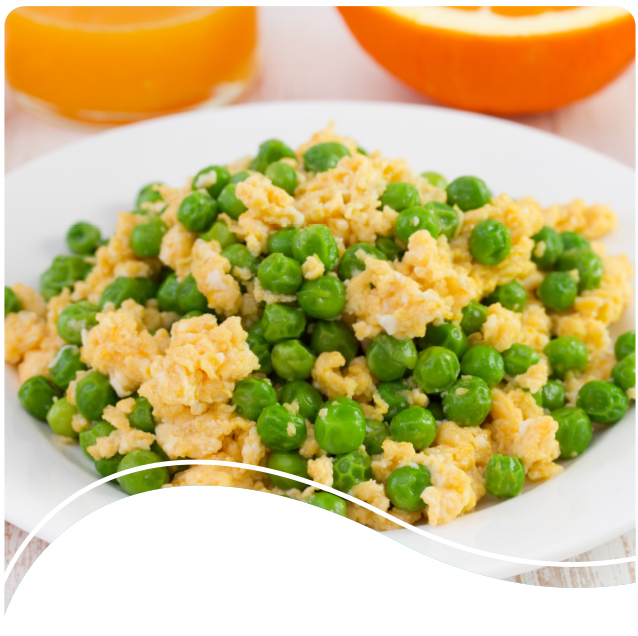 - Crack an egg into a microwaveable bowl and whisk. Add in a tablespoon or two of water, a handful of peas and stir.