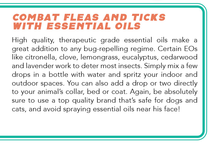 Common herbs like rosemary and mint are a great way to flavor your favorite dishes…and fend off bugs! Boil the leaves from these herbs and allow the water to cool before spraying it on your animal’s coat..