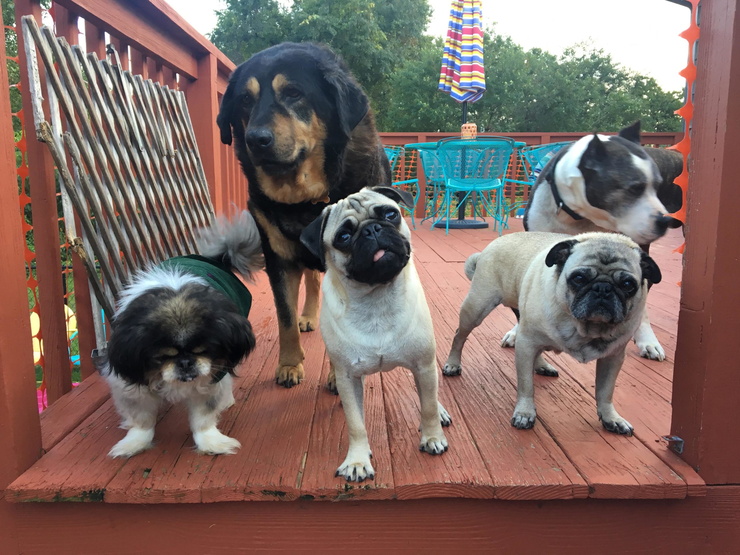 A typical day at the rescue starts at 7 o’clock in the morning. The first priority is to clean up whatever the pups left behind during their midnight wanders – cleanup is a constant theme throughout the day – and then it’s time for a family breakfast! Volunteers come over during the day to hang out with the four-legged residents and, according to Kristen, snuggling on the couch is a favorite activity. After a few hours of play and socializing, the dogs typically have a long nap followed by an early bird – 3pm – dinner. What a life!