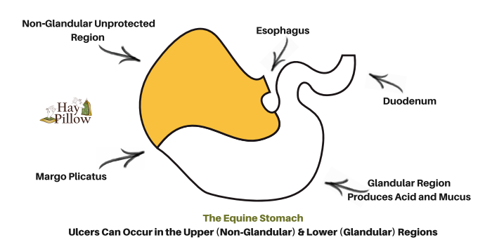 Add lack of forage to this equation and you’ve just exposed your horse to two of the most common causes of gastric (stomach) ulcers. Ulcers can develop in as little as 24 hours and recur just as quickly.
