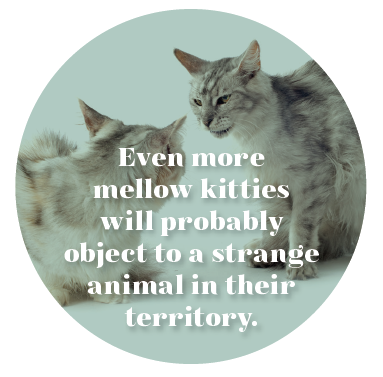 - Discourage company from bringing their own furry friends along. Even more mellow kitties will probably object to a strange animal in their territory.