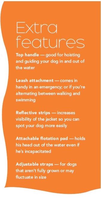 The most important thing to consider is what will work best for your needs. “A handle and bright colors for visibility are some of the basic features of almost any dog lifejacket,” says Katherine Taylor, social media manager with Hurtta America. “If you’ll be out at night, look for reflectors.” See the sidebar below for more available features.