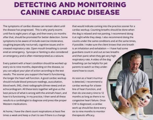 A comprehensive look at cardiovascular diseases in dogs along with integrative treatment approaches combining Traditional East Asian Medicine (TEAM), acupuncture, herbs, nutrition, and other therapies to support heart health.
