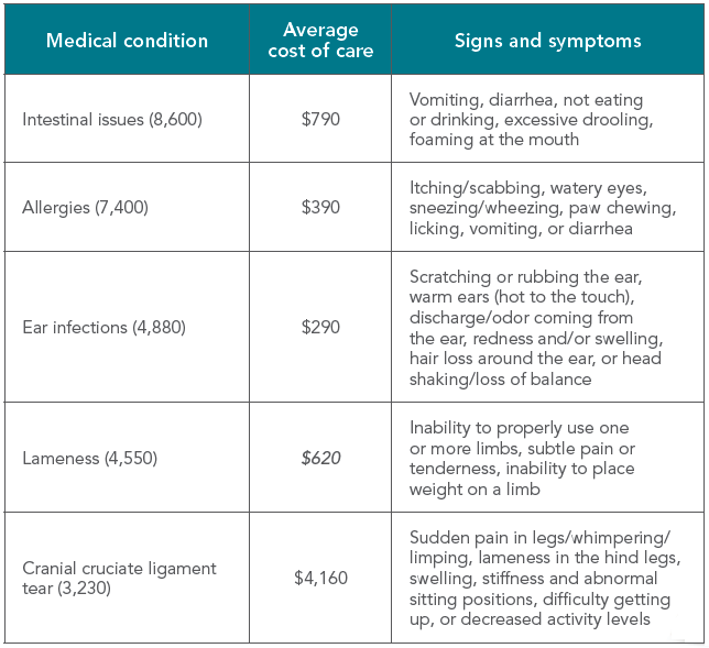 To better understand the costs associated with pet health care, Embrace Pet Insurance has released helpful claims data for the top five dog diagnoses of the more than 200,000 claims filed in 2018. Take a look: