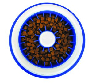 Because the bristles break up the bowl’s surface area, they also force the dog to eat more slowly, preventing him from inhaling his food. In fact, the DentaDish can make mealtime last up to ten times longer when compared to regular bowls. This reduces the risk of bloating, a dangerous condition that can occur when a dog eats too quickly and gulps down a lot of air; the air turns into gas and causes the abdomen to swell, putting pressure on the heart, lungs and other organs. Dogs that gulp down their food might also feel unsatisfied, which can cause overeating and begging.