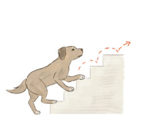 This works best on carpeted stairs. Smooth materials can be slippery, and you want to make sure that your dog doesn’t get injured while playing.