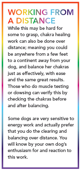 The more you work with your dog’s chakras, the more you’ll be able to feel their energy and know when something’s out of balance and needing attention.