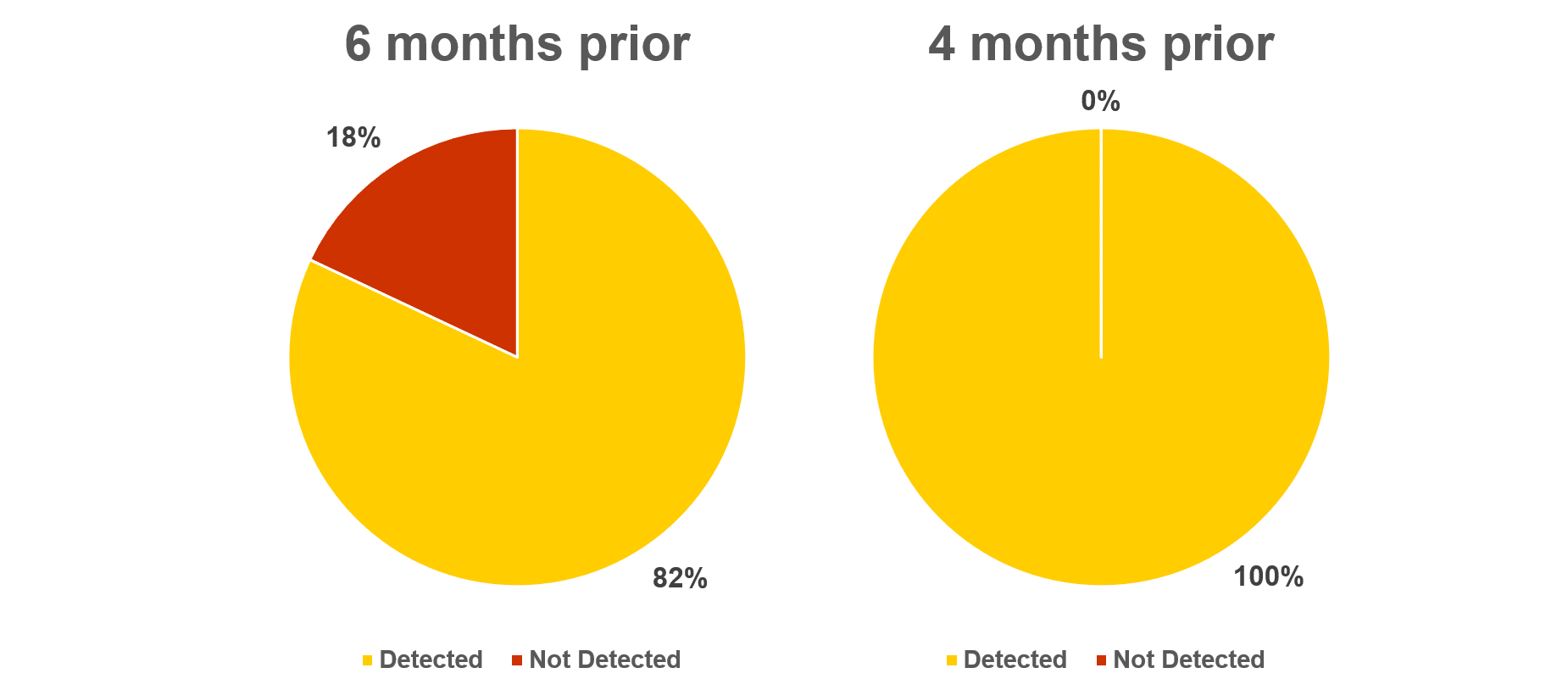 - Six months is a good compromise as 82% of cancers in the study were detected six months prior to clinical signs.