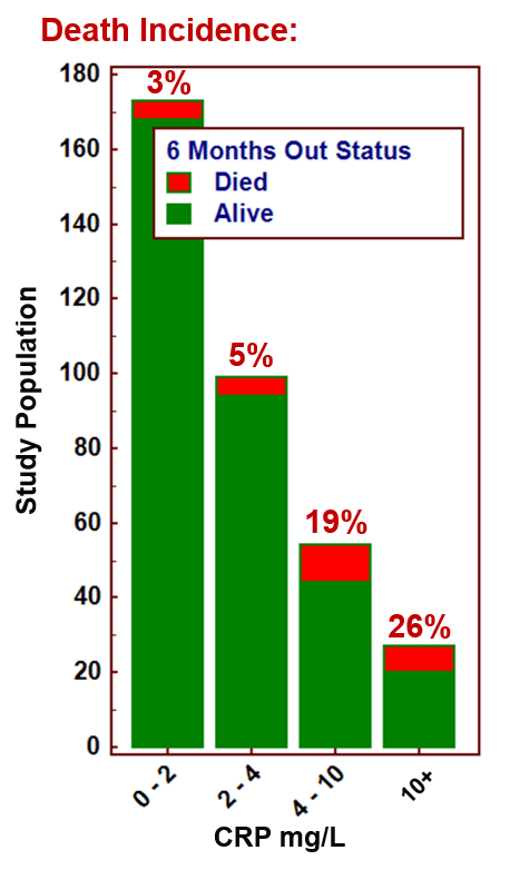 Mortality increases with CRP level: