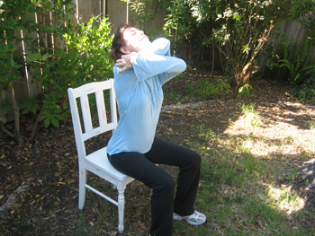 13. Notice how you are sitting in your chair now. How is your weight distributed on your seatbones? How do your feet make contact with the floor? Gently look up and down. Is that easier to do now? Does your whole spine and pelvis help you look up and down now? This can improve the suppleness of your spine, free up your arms and help reduce your chance of