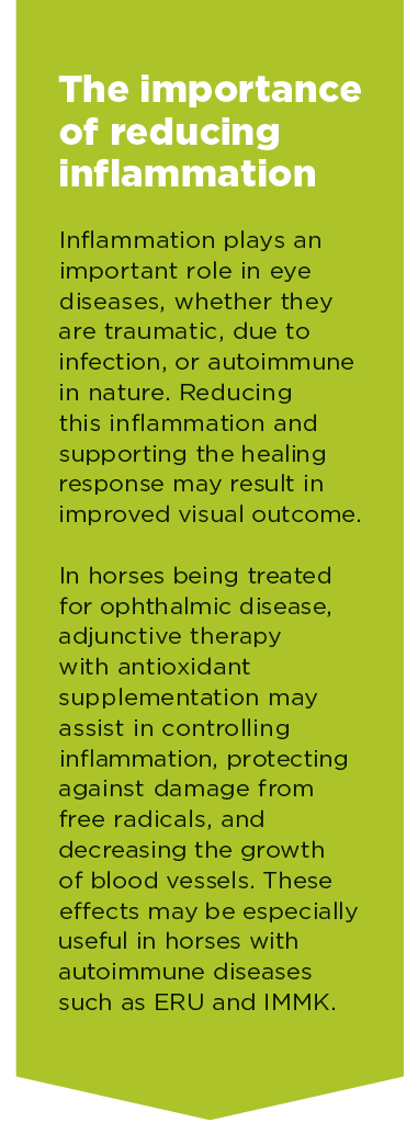 Horses also suffer from autoimmune diseases of the eye. Similar to autoimmune diseases in humans, such as lupus or rheumatoid arthritis, the immune system attacks its own cells as if they were foreign, like bacteria or viruses. Autoimmune eye diseases can be difficult to predict and treat, and may have a significant impact on vision.