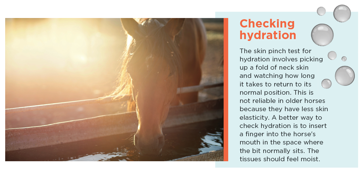 Older horses may have more trouble regulating their body temperature – either cooling off in heat or keeping warm in winter, or both! If they sweat more in summer, they will have higher salt and water requirements. When keeping warm is the challenge, they need more calories.