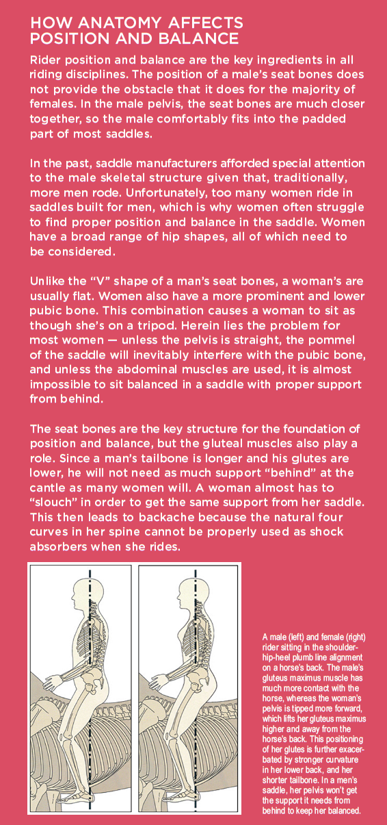 Human anatomy is a crucial factor in saddle fit, and gender is a major part of this. Because saddles have traditionally been built for men, they have it much easier when trying to find saddles that fit. In this article, we’ll discuss five key points to consider when determining proper saddle fit for women. After all, it’s important for a female rider to have a saddle that conforms to her shape, and not the other way around.