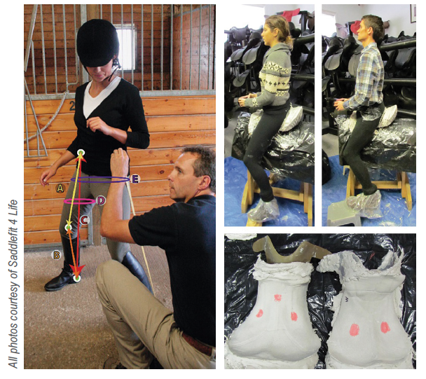 In dressage especially, it is difficult for women to achieve the classic “shoulders-hips-heels” straight line, because the articulation of their hips causes their legs to naturally angle out. It is painful to sit on the pubic bone, and as a result, most women collapse at the hip to escape the pain. The leg shoots forward and time is spent fighting the position instead of concentrating on riding. Changing the angle of the flap and the position of the thigh roll will address this problem.