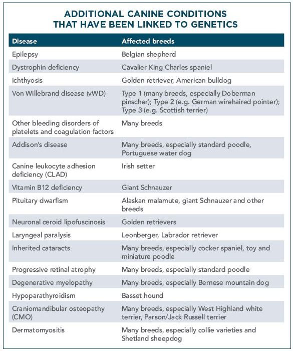 The table on page xx lists more conditions shown by genetic testing to be associated with certain breeds.