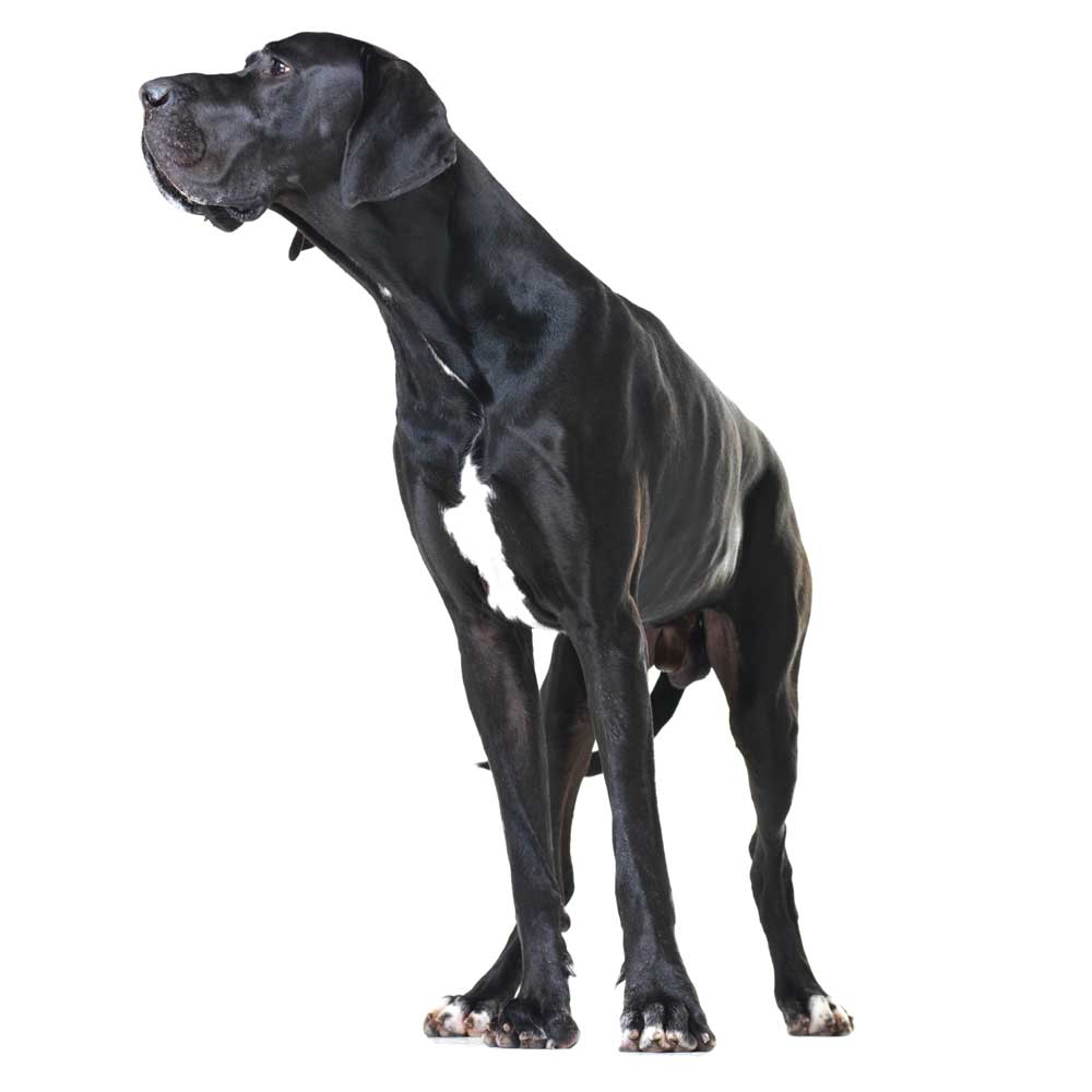 Big, bold and a bit goofy, the Great Dane is a loving dog who adores his people. He is a leaner, preferring to be right up against his owner, and if he had his way he’d be a lap dog too. He enjoys going for long and often brisk walks, and without training can be difficult to hold onto once he gets going. Given his great size and independent thinking, it is important to start training early, keeping sessions short and sweet.