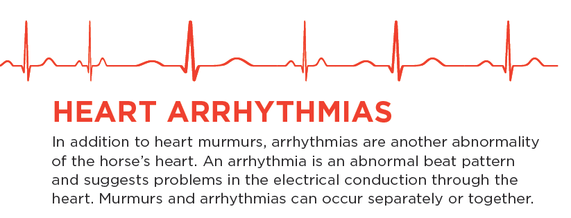As just suggested, the presence of a heart murmur does not always indicate problems. In cases of problematic heart murmurs, the sounds will be higher-pitched, less uniform, and the horse may suffer from reduced performance. In some extreme cases, the heart may sound like a top-loading washing machine sloshing its water around. The washing machine sound comes from an inability of the heart valves to prevent a backflow of blood between the chambers as it squeezes. In these horses, a jugular pulse is often present.