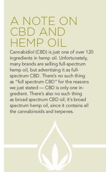 Broad spectrum hemp oil contains all the same cannabinoids and terpenes as full-spectrum hemp oil, except the THC is taken out. This means the entourage effect is still produced thanks to all the beneficial cannabinoids and terpenes, but without the risk of THC exposure.