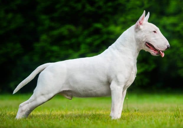Once a well-proportioned, athletic dog, the Bull Terrier has transformed discernibly over time. His thicker abdomen and unnaturally rounded head and snout are a consequence of selective breeding.