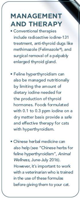 While feline hyperthyroidism can be an alarming diagnosis, it can be treated and managed (see sidebar above). Keep an eye on your kitty, especially if he’s getting a bit older. If he’s suddenly eating everything in sight, yet losing weight, have him checked out by your veterinarian.