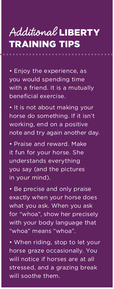 I take all this invitation and reward training to the place where I eventually ride at liberty, or at the very most with a rope halter and clip-on leather reins. When your horse trusts you as a friend and leader, it is all you will ever need.