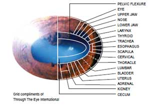 In 1950, Bernard Jensen, DC, PhD, pioneered iridology in the U.S. and developed a grid which mapped out the relation of various organs and tissues to the human iris. Although this grid loosely correlated to the horse’s eye, it wasn’t until recently that a specialized grid was developed for equines.