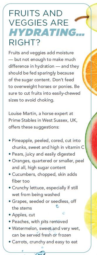 “I offer one bucket with apple juice mixed in and one of plain water so the horse has a choice,” says Dr. Jesslyn. “Some horses like water icy cold, while others want tepid water in the winter.” Offer a variety to horses that are reluctant to drink, and be sure to clean the buckets often!