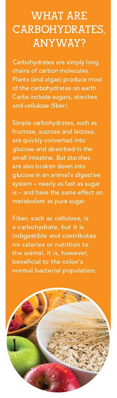 Giving your dog or cat carbohydrates has several effects on his body. First and foremost, it stimulates the pancreas to release insulin, the hormone primarily responsible for glucose metabolism. It allows glucose from the blood to move into cells; and it promotes the storage of body fat from excess glucose. But high blood levels of insulin and glucose contribute to cancer development and growth.