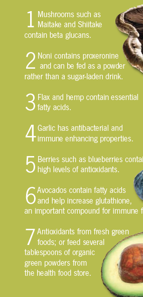 • Other types of immune system support include good old vitamin C, which regulates the immune system and helps heal the connective tissues of the joints. Doses range from 4 to 5 grams up to 6 to 8 grams per day, though I usually use the lower doses.