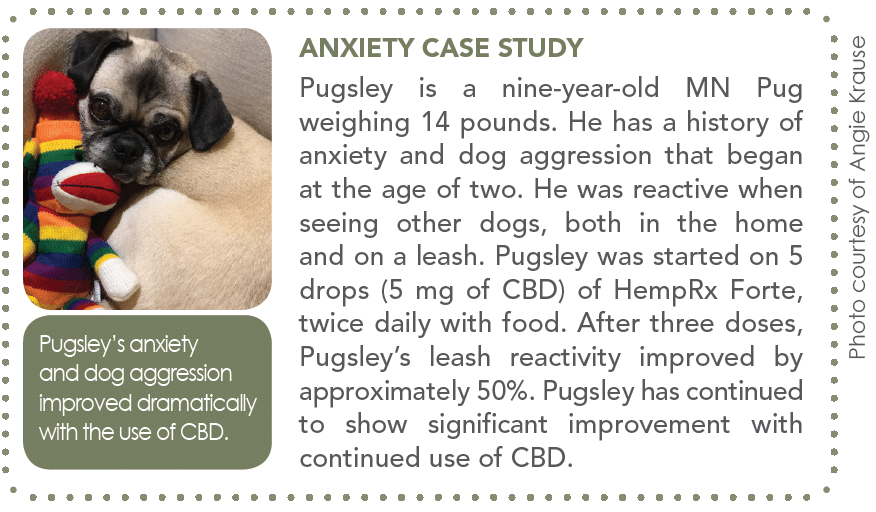 In this author’s clinical experience, full spectrum CBD products have been most effective in cases of anxiety, osteoarthritis and seizure disorders in both dogs and cats. For the purposes of these case studies, HempRx Forte was used.