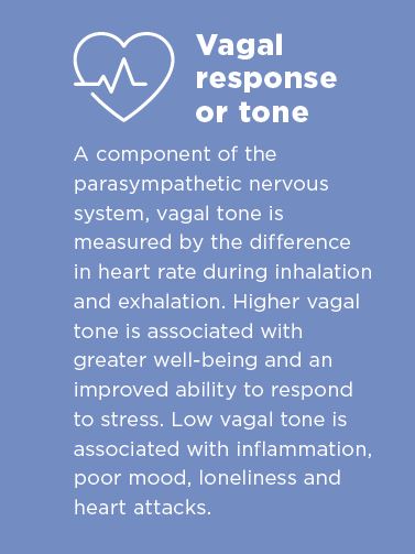 Current research into the Polyvagal Theory explains what happens to us when we suffer from a severe accident or extreme fear. Simply put, the autonomic nervous system, of which the vagus nerve is a major component, gets “stuck” in a disrupted pattern caused by the trauma. We become paralyzed, just like a deer in the headlights. After the danger has passed, we are designed to run – a reaction that would relieve the fear we just experienced. When we can’t run away (as with severe injury), normal vagal tone (see sidebar at right) is altered. This results in stress, which is often the source of disease.