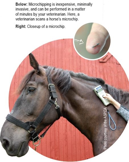 This is just one real-life example of how a microchip can ensure your worst nightmare has a happy ending. Microchips form a permanent link between you and your horse, providing a safe and effective way to reunite caretakers with their equines in the event of theft, escape or natural disaster. They are also an important tool to assure positive identification at equine events. And, with more breed and sport associations requiring microchips for registration and competition, they are quickly becoming the norm, with some states requiring that horses be microchipped.