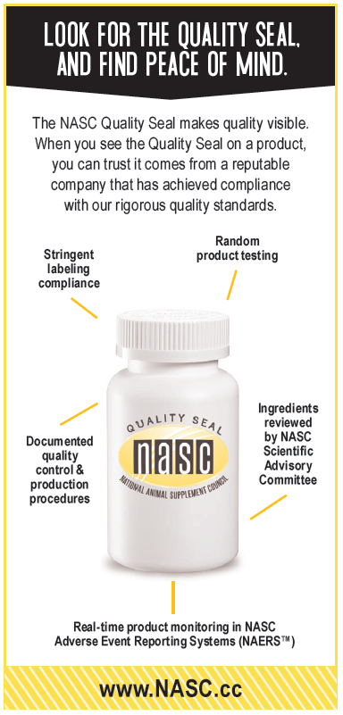 The National Animal Supplement Council (NASC) is improving and standardizing the animal supplement industry by awarding their Quality Seal to companies that meet their rigorous standards.
