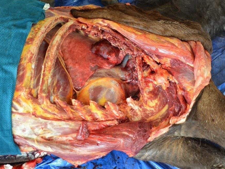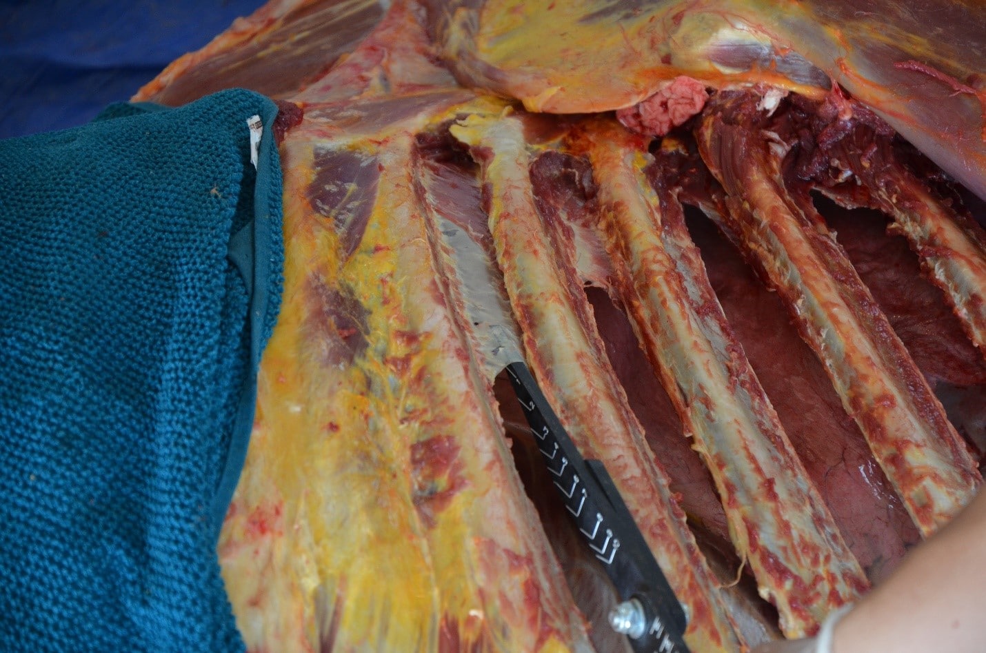 The parietal pleura is tightly attached to the underside of the ribs and intercostal muscles. Anatomy photos courtesy of Paige Poss in conjunction and cooperation with Anatomy of the Equine.