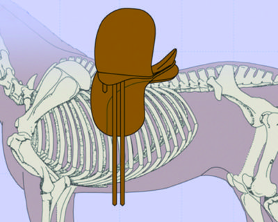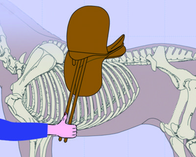 If the billets hang too far forward into your horse’s elbow area, they may make him sore in the elbows. And once again, gravity will drag them (and the girth and saddle along with them) back into the girthing area. You might think this is not a problem because at least your horse’s shoulders are free. However, there will be too much pressure on the panels at the rear of the saddle. Too much of the rider’s weight will be on the horse’s lumbar and kidney area. This is especially problematic when your mare is in season, since this excess pressure on her ovaries may cause her to show extreme discomfort or resistance when being saddled and ridden.