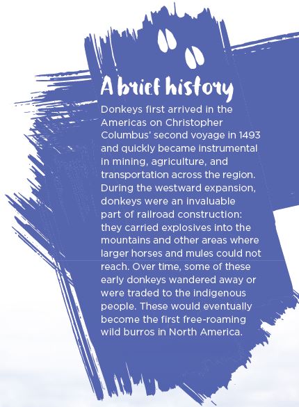 In 1971, centuries after burros were first introduced to the West (see sidebar at right), Congress passed the Wild Free Roaming Horses and Burros Act as a way to address the overpopulation of these animals. Prior to the passage of this act, horses and burros were routinely shot, rounded up and harassed as they were seen as direct competitors to cattle ranchers. The Bureau of Land Management (BLM) was given the responsibility of establishing Herd Management Areas (HMAs), setting stocking rates and removing any horses or burros deemed excessive to what the rangelands could support. Through the years, the BLM has assisted other agencies such as the National Park Service (NPS) and US Fish and Wildlife Service (USF&WS) with their burro populations. Unfortunately, in recent years, the numbers have become much higher than their adoption program can handle. Today, the storage of these removed horses and burros has finally hit a tipping point.