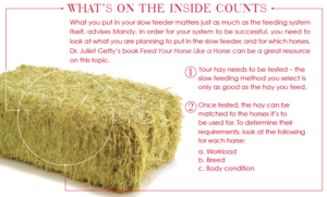 Slow feeding is a term that’s much more widely understood and accepted now than it was even a few years ago. With more products and information becoming available on slow feeding systems, many horse owners are realizing it makes good sense and giving it a try.