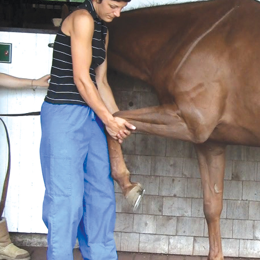 Stretching should not be used to replace regular veterinary medicine. If your horse is injured, or experiencing any degree of lameness, have him looked at by a veterinarian before attempting any stretches. As well, certain stretches should be avoided depending on the severity of an injury. One example is during recovery from ligament damage. When a ligament is insulted, scar tissue is encouraged so the area can regain some strength. When you stretch that area, the scar tissue weakens, defeating its purpose. Conversely, when muscles or tendons tear, the range of motion in that area is often decreased, and stretching these tissues allows the fibers to realign and regain most if not all their initial range of motion.