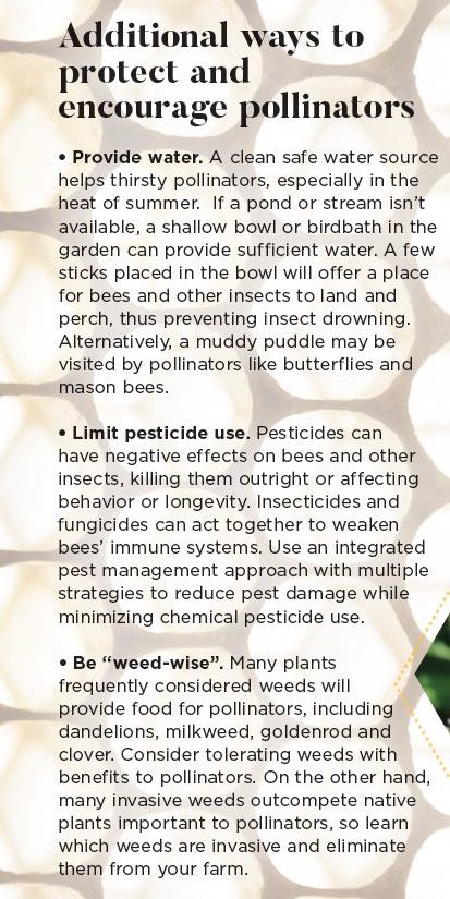 By selecting pollinator-friendly plants and following a few easy management practices (see sidebar above), your farm can come alive with bees, butterflies and other pollinators.