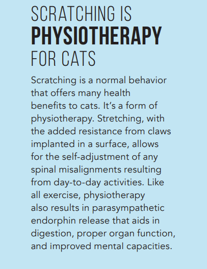 - Create a cat-friendly environment in your home with vertical and horizontal scratching posts made of sisal, carpet, and cardboard substrates. Offer areas of respite from interaction with others, a cat “superhighway” that allows access to safety, and an ability to observe the surrounding area without surprise interactions.