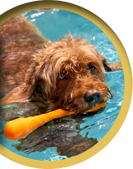 Playing with toys and paddling and swimming along with your dog is a great way to reassure her that swimming is a fun time. Once she knows how to swim, she might enjoy participating in other aquatic leisure activities with you, such as paddle boarding, surfing, and kayaking.