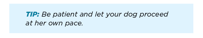 Encourage your dog to enter the water on her own. You can do this by enticing her with a toy or asking her to come to play with you near the water. These first steps are vital to a successful experience.