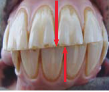 •Now look from the side – is there an overbite or overjet (below)? If so, chances are your horse cannot put his head down and drop his mandible into a comfortable or neutral position, because the anterior motion of his jaw is impeded.