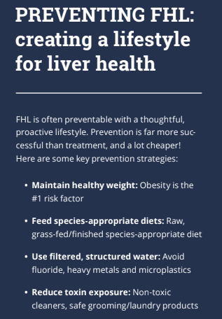 Modern processed pet foods, especially dry kibble, are often high in carbohydrates, low in moisture, and filled with synthetic nutrients and inflammatory additives. These unnatural diets contribute directly to obesity, inflammation, liver stress, pancreatitis, and potentially hepatic lipidosis. FHL often arises when an overweight or obese cat experiences prolonged anorexia (not eating). This could occur due to stress, illness, or sudden environmental changes. The resulting rapid fat mobilization overwhelms the liver, leading to lipid accumulation in the liver cells and resulting in liver dysfunction. Risk factors include:
