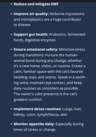 Above all else, keep the patient alive and supported. The cornerstone of treatment is aggressive nutritional support, ideally initiated within 24 hours. Enteral feeding via a feeding tube (nasoesophageal, esophagostomy, or gastrostomy) is essential. Once the danger has passed and the kitty is eating and resolving the metabolic derangements, the integrative work begins. The epigenetic influences (diet and lifestyle) should be improved while identifying and resolving the underlying root causes. Place focus on resolving toxicities, deficiencies, restoring liver health, rebuilding microbiome diversity, and supporting detoxification of all six organs of elimination, especially the liver.