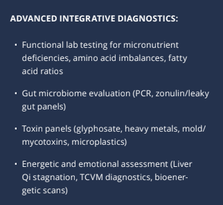 - Integrate therapies like ozone, hyperbaric oxygen, frequency therapy, and assisted lymphatic therapy to restore homeostasis.