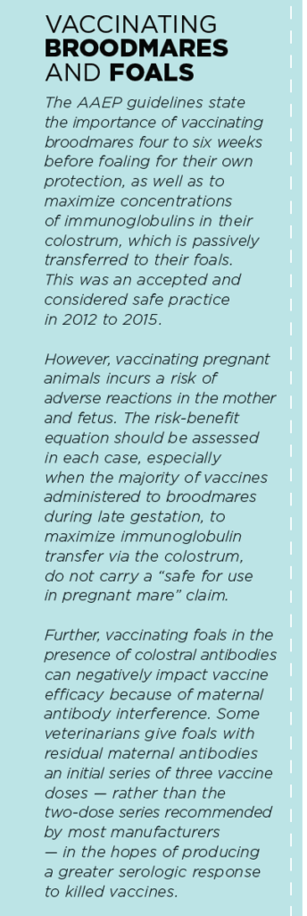 American Association of Equine Practitioners (AAEP). Vaccination Guidelines Review Group, 2015 and Executive Summary, 2012.